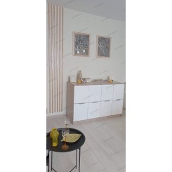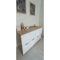 *Комод этой модели соединяет в себе несколько различных стилей. Первая панель "Дайва 3Д" представляет собой выразительный рельеф, хаотично изгибающийся на поверхности фасада, напоминая бурный поток горной реки, разъединяясь и снова сплетаясь воедино. Особенно эффектно панель выглядит в глянцевом покрытии. Особенностью данного вида панели является игра света и тени на многочисленных гранях рельефа. Вторая панель "Кристалл" отлично гармонирует в любом интерьере. Особенностью этого фасада являются геометрические формы рельефа, объединяющиеся в четкие фигуры на поверхности панели напоминающие формы кристаллов. Если в фасадах комода чередовать панели с матовой и глянцевой поверхностью, получится модель, которой можно похвастать, благодаря сочным тонам панели "Дайва" и текстурами панели "Кристалл".