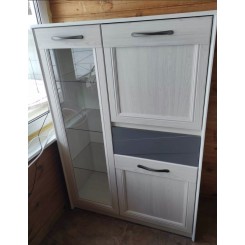 - выдвижной ящик, 3 распашные двери (две глухие, одна стеклодверь)