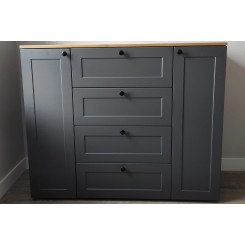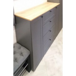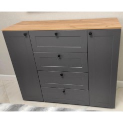 Комод Остин, в стильном цвете фасада Серый Графит в сочетании с древесным оттенком корпуса - это удобный и функциональный мебельный элемент для хранения различных вещей. Практичность, стиль и возможность организации пространства делают модель 16.221 незаменимым атрибутом в современном доме. В центре четыре выдвижных ящика по краям двери с полками. Ящики выдвигаются на скрытых направляющих.