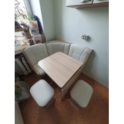 - Комплектация: угловой диван, стол, два табурета.