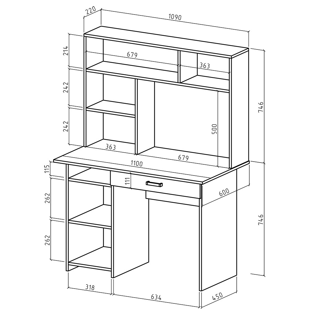 Стол письменный "Лайт-2ЯСН" с надставкой