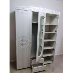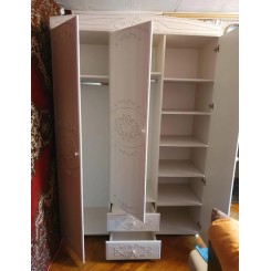 - характеристика: комбинированный, одно бельевое отделение с полками, два платяных, два выдвижных ящика на шариковых направляющих