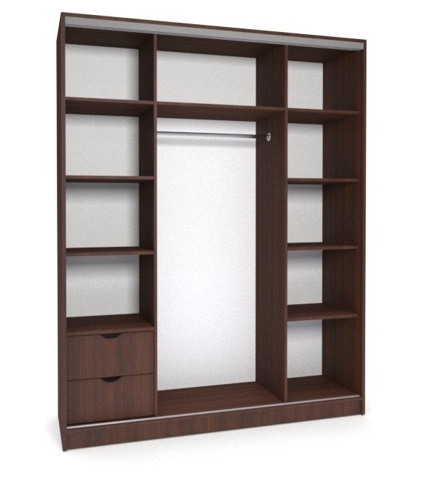 - Ламинированное ДСП 16 мм, система дверей "Версаль", что придаёт плавный и мягкий ход дверей, алюминиевый профиль.