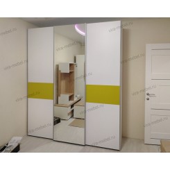 *Образец на фото: корпус шкафа и двери ЛДСП, вставки Лакобель - жёлтый, зеркальная дверь.