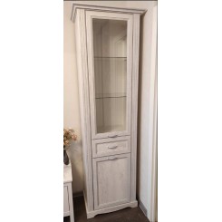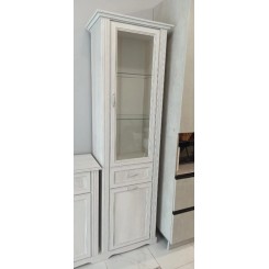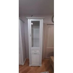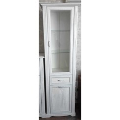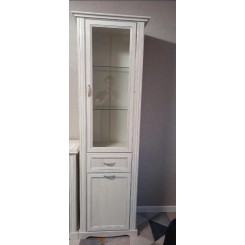 - характеристика: шкаф колонка однодверная, стеклодверь, две стеклянных полки, три ниши, выдвижной ящик на шариковых направляющих в центре. Дверца с одной полкой снизу.