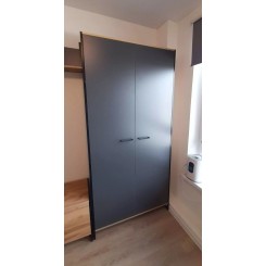 - характеристика: за дверями полки и выдвижная штанга.